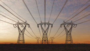 High Voltage Electric Power Lines At Sunset